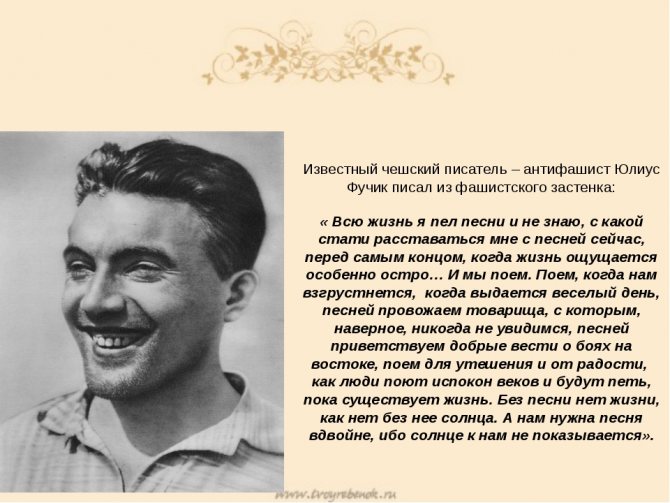 — Юлиус Фучек, роман «Репортаж с петлей на шее» (1942—1943)