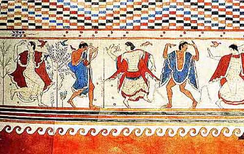 Погребальный танец, V в. до н.э. Тарквиния . Гробница Триклиния. (фрагмент)