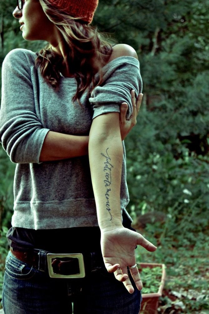 - Руки являются самыми популярными для татуирования. Плечо, ладонь, кисть, пальцы – куда же набить надпись? Мастера не рекомендуют крупную надпись размещать на этих частях тела. Если латинский афоризм можно прочитать даже на фото, лучше отказаться от затеи, так как работодателя может смутить факт наличия тату.