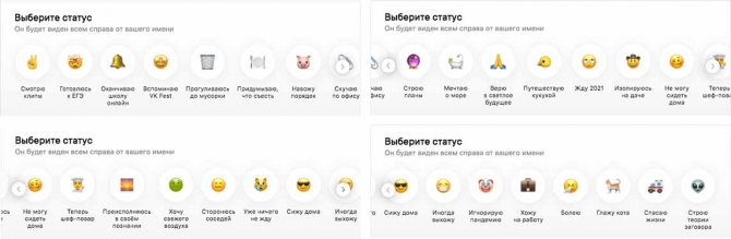 - Вы окажетесь в разделе статусов с разными смайликами;