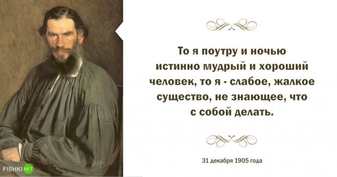 Как видим, в приведенных цитатах Толстой предстал и как мудрый человек, и как человек считавший себя Богом, и как тонкий психолог, и как ниспровергатель существующих порядков, находившийся в хроническом неладу с близкими и дальними. Но все-таки, наверное мудрости и стремления к добру в них намного больше, чем всего остального.