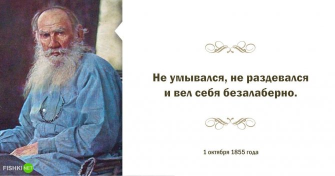 Лев Николаевич, какой бы глыбой и матёрым человечищем он ни был, всё-таки был простым смертным, и он тоже ленился, совершал дурные поступки, объедался, пил, обижался и грустил. Обо всём этом он пишет в своих дневниках. Толстой вёл дневник с 19 лет и до конца жизни. Особенно часто Толстой сетовал на одолевшую его лень.
