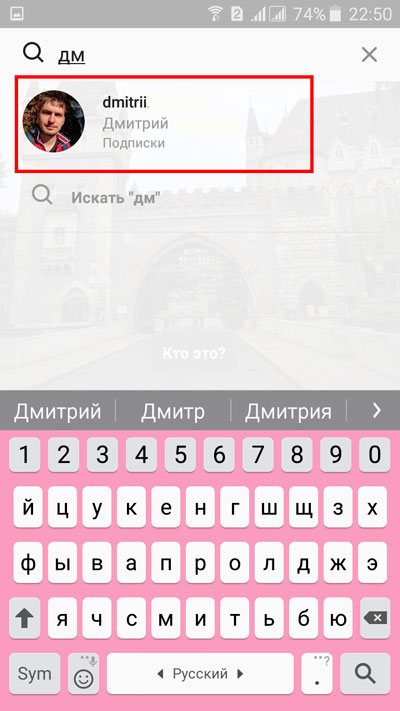 Начинаем вводить первые буквы имени. Когда выскакивает нужный человек, выбираем его.
