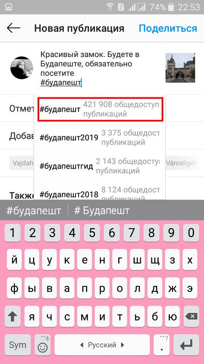 Добавляем все хэштеги, которые приходят в голову, глядя на публикуемое фото. Можно их писать и на русском, и на английском языке.