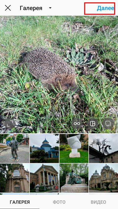 Выбираем фото из предложенных в галереи. Нажимаем «Далее».