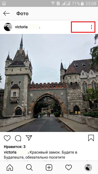 Открываем публикацию, которую нужно откорректировать. Нажимаем на вертикальное троеточие, которое располагается в правом верхнем углу.