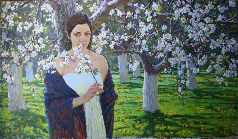 А кругом сады белеют, А в садах бушует май, И такой на небе месяц — Хоть иголки подбирай. За рекой гармонь играет — То зальется, то замрет… Лучше нету того цвету, Когда яблоня цветет.